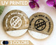 - Unlike other sellers, we print the designs onto the coasters with UV technology, meaning we can print on both the white and the wood.