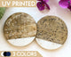 - Unlike other sellers, we print the designs onto the coasters with UV technology, meaning we can print on both the white and the wood.